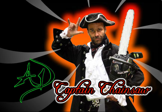 This is the homepage of AD Tree Pirate, aka 'Captain Chainsaw' Captain Chainsaw was the first of the famous Tree Pirates to go solo. He is best known for his huge chainsaw sculptures exhibited at the Glastonbury festival, England. Where he built an enormous Tree Ent (from Lord of the rings) kneeling on a car and famously, a huge scorpion suspended fron a wooden frame of tree trunks.